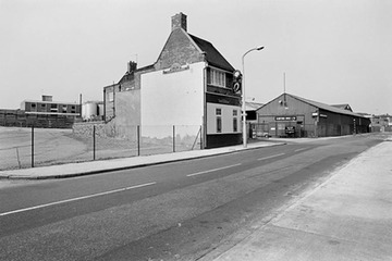 The ‘Magnet & Dewdrop’ situated on Westferry Road, looking west towards what was once Samuel Cutler’s steel works. The pub was demolished in 2001 and a block of flats built on the site