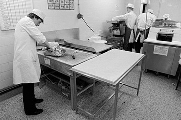 Meat preparation: Mark, in centre of image, and Lenny Martin