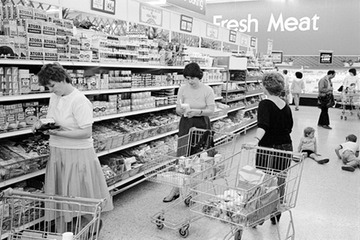 Home baking aisle: Carol Hunter and Jean Sinfield in picture. “Jean Sinfield worked in the cash office. In those days, staff got books of vouchers to spend in store, once you used them that was it. Now (2013) there’s 10% off everything”