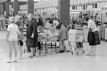 Shoppers queuing at the check-out tills