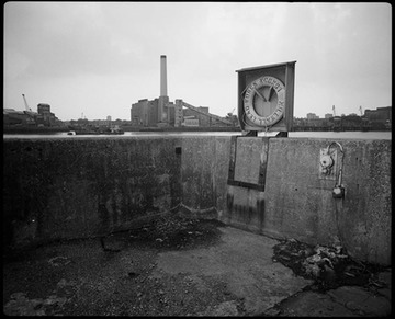 1986. View from the wharf looking south across the river towards Deptford Power Station