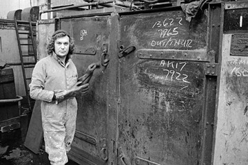 'Scotch’ Johnny unloading trays from the drying ovens in the Blue Plant