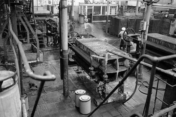 The press department where the colour was squeezed to remove the water and compress it into a cake