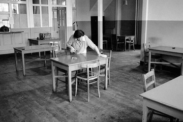 Kathy Steptoe cleaning the canteen