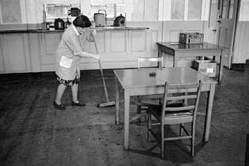 Kathy Steptoe cleaning the canteen