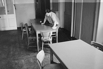 Kathy Steptoe cleaning the canteen