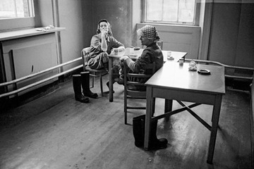 Mary Cole and Ellen ?, workers in the Blue Plant, in the canteen