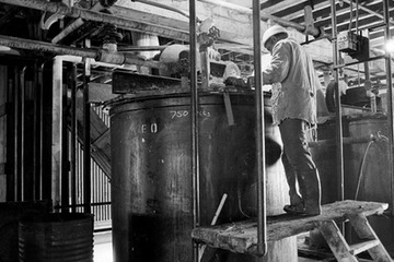 Vats in the Blue Plant where the raw chemicals were mixed and heated. Ben Oliver in attendance
