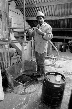 Ben Oliver preparing to pour aluminium sulphate into a chute