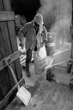 Ben Oliver preparing to pour aluminium sulphate into a chute