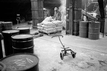 Ben Oliver preparing to pour aluminium sulphate into a chute