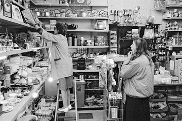Inside Nolan’s hardware shop. The customer is in two minds about buying a set of glasses through the weekly club