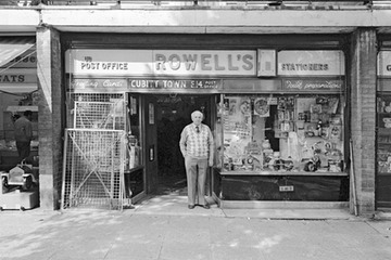 Jim Evans standing outside Rowell’s stationer’s shop and Post Office