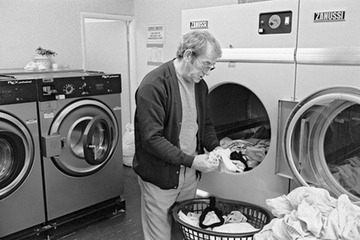 Inside Cubitt Launderette with the owner, George Scott. He was new to the business, having previously worked in the docks