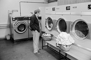 The owner, George Scott, doing a service wash inside Cubitt Launderette