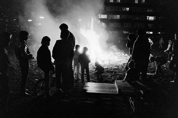 5th November 1984. A bonfire outside Galleon House on Guy Fawkes night