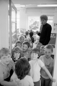 A class finishes. The teacher MAYBE Mr Tuttiet