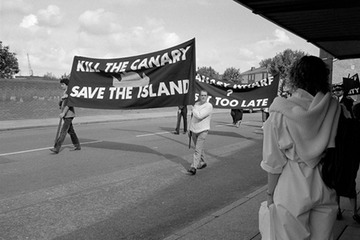 The procession on Manchester Road. Ronnie Bender Snr is holding the banner