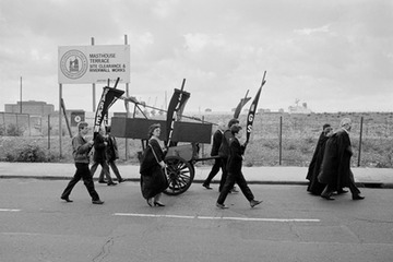 The march on Westferry Road passing the Mast House Terrace development site