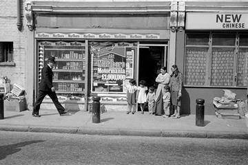 Onlookers and accompanying policeman as the march progresses along Westferry Road