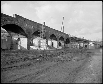 January 1986. The original viaduct which carried the Millwall Extension Railway (built 1870s) was adapted to carry new DLR trains to the first (overground) Island Gardens Station