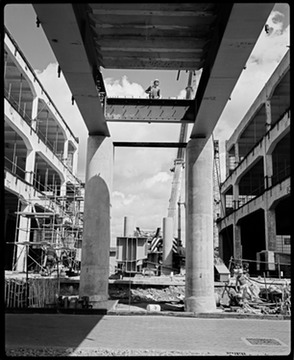 1985. Construction of the DLR at Canary Wharf, looking north