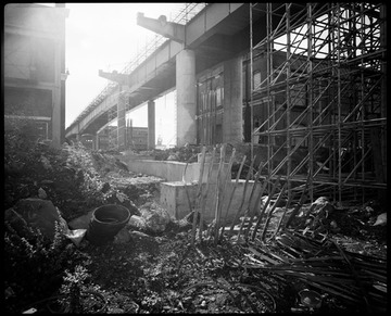 1985. Construction of the DLR across Canary Wharf