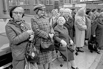 Islanders waiting for a boat to join the ‘Docklands Armada’, a flotilla of decorated boats organised as a protest against redevelopment proposals. Di Ferdani, Dot Anderson and others