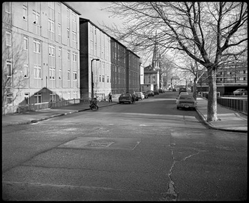 January 1986. Glengarnock Avenue, looking south-east from Stebondale Street towards Christ Church and Glenafric Avenue