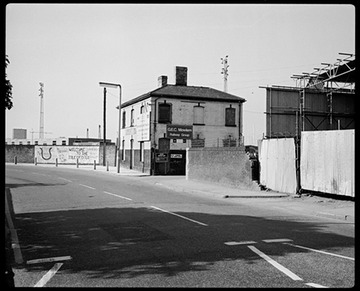 21 May 1985. Preston’s Road, looking south, with the office of Mowlem’s, the Docklands Light Railway (DLR) construction company