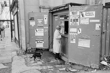 1984. Newspaper kiosk at the corner of East Ferry Road and Marsh Wall