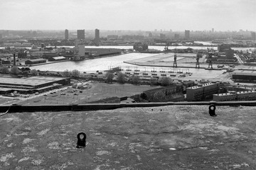 1983. View from the roof of Kelson House, looking south-west towards Millwall Docks