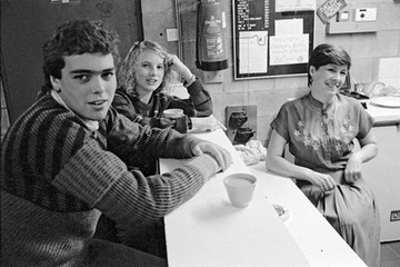 Youth Centre coffee bar: (left to right) Michael Woodard, Tina Andrews, Mrs Margaret Hook