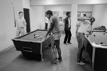 Playing pool in the youth club room