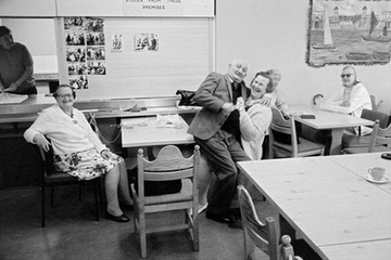 Day Centre for the elderly: dancing for the camera in the canteen