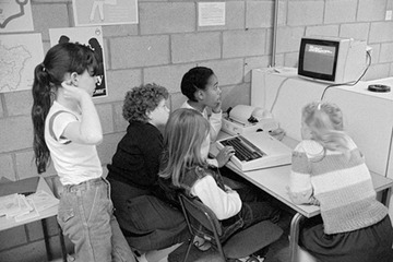 Group of children working on a computer