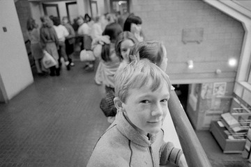 Students in the corridor: Mark Parmenter nearest camera