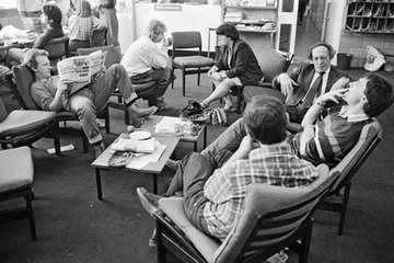 Teachers relaxing in the staff room: on the right, facing the camera, is the Deputy Head, Paul Jetter