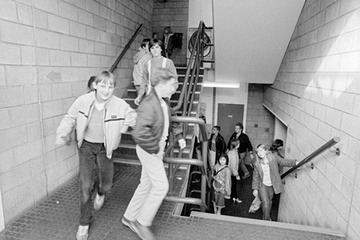 On the stairs: Christopher Verbiest, Jason Farrell, Mark Luff, Kim Bushaway, Muoi Lien, Mr John Lockwood, Gary Pritchard
