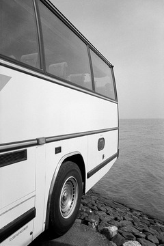 The coach parked at a cafe on the Afsluitdijk between North Holland and Friesland