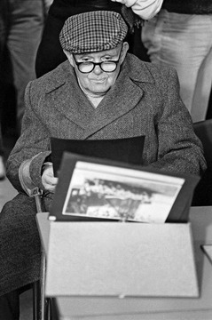 1984. Open Day at the Island History Project (later Trust) in the Lansbury Room at the George Green’s Centre: Bill Smith exploring the Photograph Collection