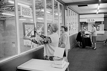 1985. Getting ready for an Island History Open Day at the George Green’s Centre: In the foreground, Nell Humphries and Bessie Conway; in background on right, Eve Adams