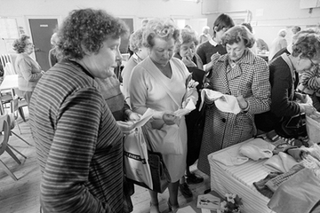 Visiting craft stalls. Look at that handiwork: Gladys Challis, Daisy Woodard, Rose Conway, Eve Hostettler, and Bessie Conway