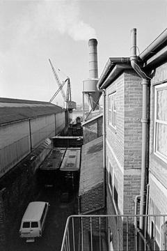 View of the side of the main building, looking west towards the river, from outside the Accounts’ Office, alongside “Price’s”, so called, it is supposed, because this was once the site of Price’s candle factory (early 19th century)