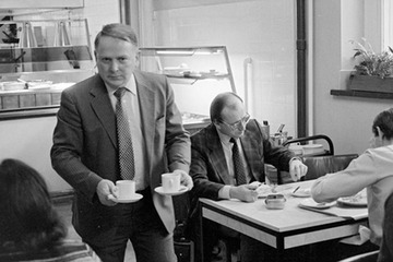 Office workers’ canteen: Jacques Giles and Geoff Jennings
