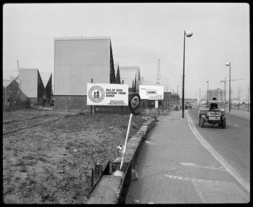 1986. Skylines business park under construction on the east side of Limeharbour, looking south