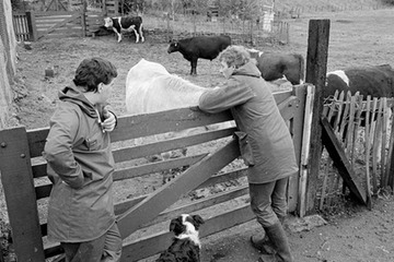 Checking on the cows, with farm assistant, Patrick Davey, on the left
