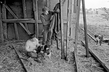 Inspecting an outbuilding. Patrick Davey, left