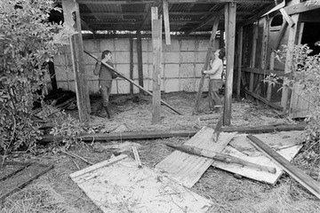 Inspecting an outbuilding. Patrick Davey, left