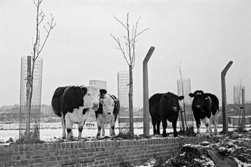 1984. Cows in winter. This site was later developed for new stables, offices and a cafe